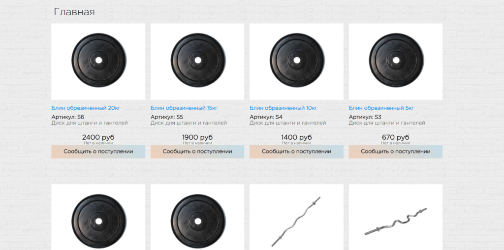 Создание интернет магазин для спортивного инвертаря