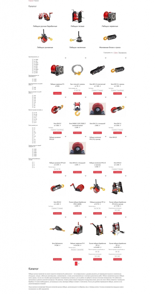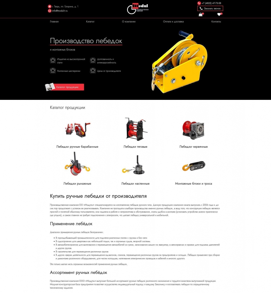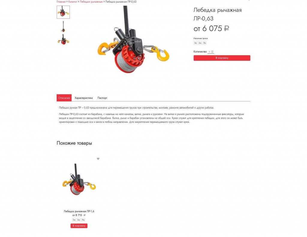 Разработка и создание интернет магазина для компании по производству ручных лебедок в Твери.