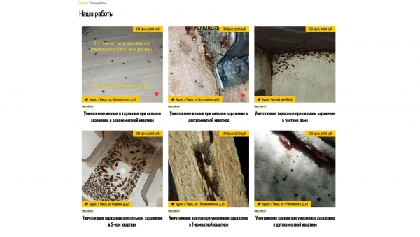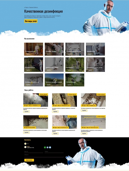 Задача: Разработка и создание сайта для компании по дезинфекции в Твери. Создание страниц с подробным описанием каждой услуги. Создание страниц с выполненными работами. Создание форм для обратной связи. Сделать адаптивный и быстро загружаемый сайт.