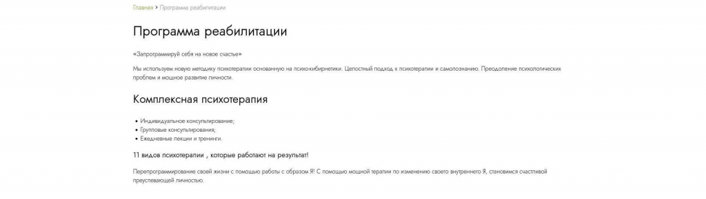 Сайт для женского реабилитационного центра