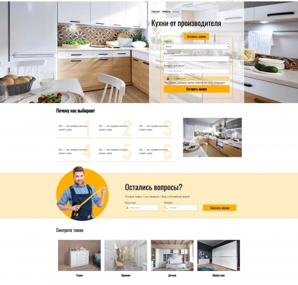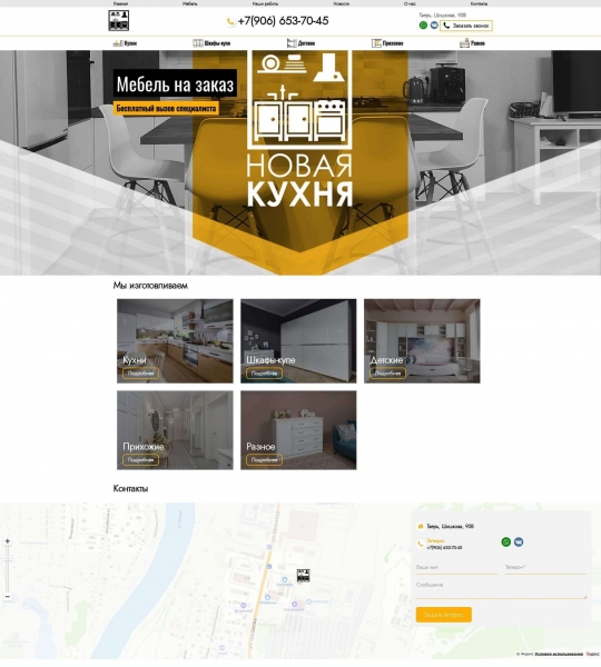 Задача: Разработка и создание сайта для услуг по изготовлению мебели на заказ из дерева в Твери. Создать отдельную категорию под каждый тип мебели. Реализовать фотогалерею для каждой категории выполненных работ. Сделать адаптивный сайт.