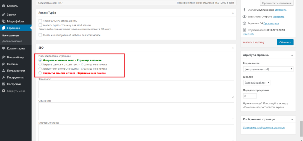 Управление индексацией страниц необходимо, чтобы открывать или закрывать страницы сайта от индексации, чтобы они в дальнейшим присутствовали или не присутствовали в поиске. По умолчанию, все страницы сайта открыты для индексации. Чтобы закрыть текущую страницу от индексации необходимо в head добавить: <meta name='robots' content='noindex,nofollow'/>.